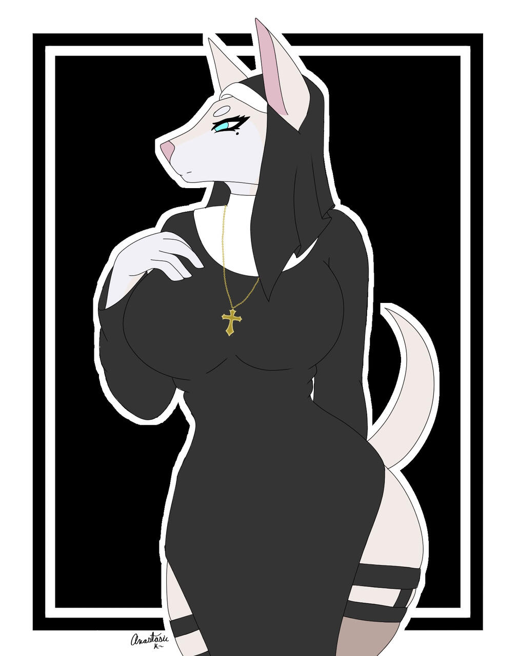 Extra: can have slight body modifications. Can NOT be Futa, only wears her rosary when she has her gown on.