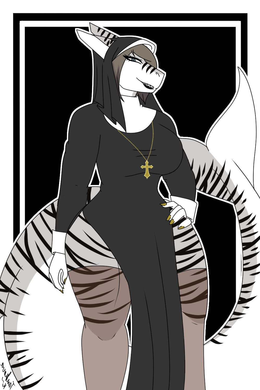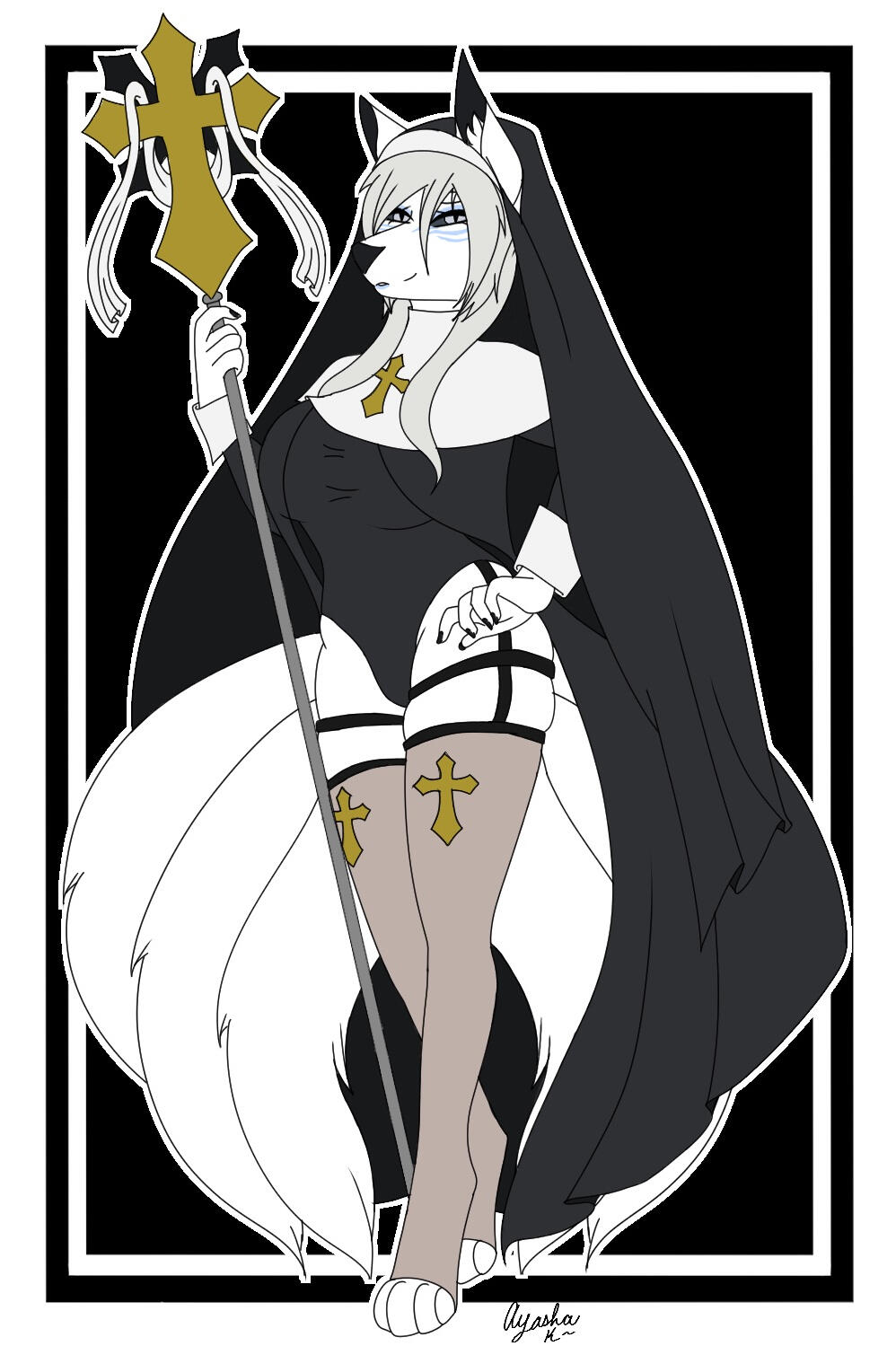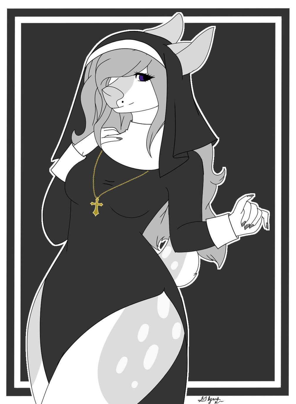 Extra: can have slight body modifications. Can NOT be Futa, only wears her rosary when she has her gown on.